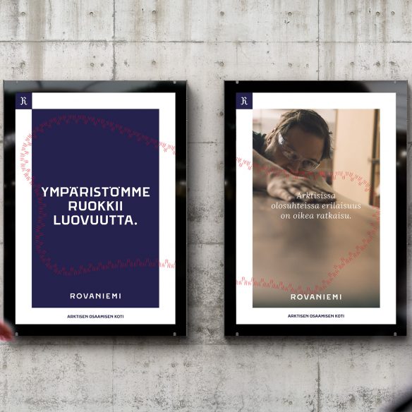 Rovaniemen visuaalisesta ilmeestä ja siihen liittyvistä elementeistä löydät lisää tietoa Ohjeisto-sivulta.